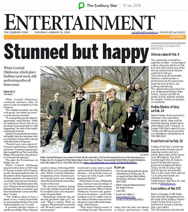 There’s no warm-up for White Cowbell Oklahoma’s sixth full-length release, recorded at Zeus’s Toronto studio and also in concert in Amsterdam. As in their live shows, where flames and power tools feature prominently, the underrated Toronto old-school rockers throw us into the fire immediately, and that fire doesn’t die until long after the final chords – from not one, not two, but three guitars – ring out.” – Now Toronto (2015 Mixto Sixto Review)“a fist-pumping, anthemnic set of songs thick on low-end, pelvic thrust and grit. Easily their most confident effort to date, it displays a new Bell that is streamlined and primed for attack. ” – Exclaim! (2009 Bombardero Review)