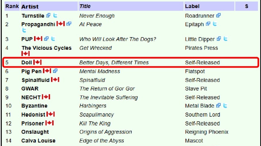 0 Thank You Canadian MDs and DJs for the airplay love!\m/\m/ !earshot – The National Loud Chart For the Week Ending: Tuesday, August 26, 2025 CJLO 1690 AM – Montreal – Loud #3 DOLL | CJLO 1690 AM – Montreal – Top 30 #21 DOLL | CKUA 94.9 FM – Edmonton – Top 30 #16 WOODHAWK