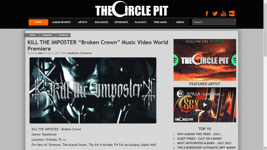 Since they got together, Kill The Imposter has released “The Decimation” (2019), “A Strain Of Agony” (2020) and “The Violence Sessions” (2021). They have pummeled the stages of Central Florida Metal Fest and Tampa DeathFest and played alongside heavy hitters such as Nile and Terrorizer.