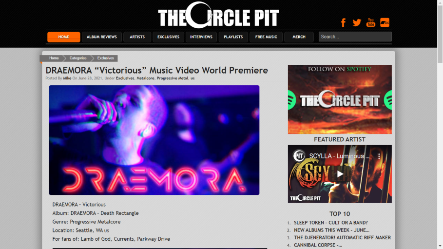 “Venom is a very heavy album and I absolutely loved the guitar work. The self-titled track really showcased the heavy riffs and helped set the course for the rest of the album. ‘Maximum Carnage’ also had nice guitar work as well. Hard, heavy, and head bang worthy riffs…. In all I highly recommend this album for fans of bands like Trivium and Meshuggah. With Marko’s guitar work plus the vocals, it’s definitely worth a listen for anyone that enjoys heavy metal, with some screaming vocals.” – Music Crowns