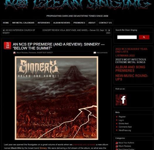 ““Death thrash” is the simplified genre description for what Sinnery do, but it’s the strong melodies and the variations among and within the songs that make the album such an adventure to experience from start to finish. Compared to the debut all those years ago, which was entirely written by vocalist/guitarist Alon Karnieli back when he was about 16-17 years of age, these tracks are more elaborate, more sophisticated, more reflective of different moods, while at the same time being more brutally extreme.” – No Clean Singing