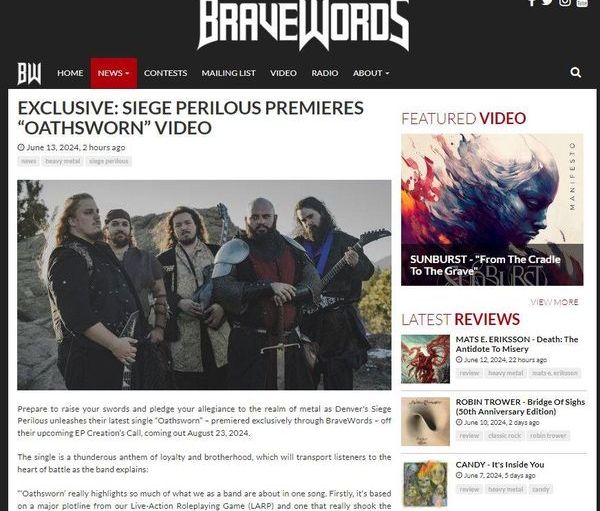 Prepare to raise your swords and pledge your allegiance to the realm of metal as Denver’s Siege Perilous unleashes their latest single “Oathsworn” off their upcoming EP “Creation’s Call”, coming out August 23, 2024. The single is a thunderous anthem of loyalty and brotherhood, which will transport listeners to the heart of battle as the band explains: